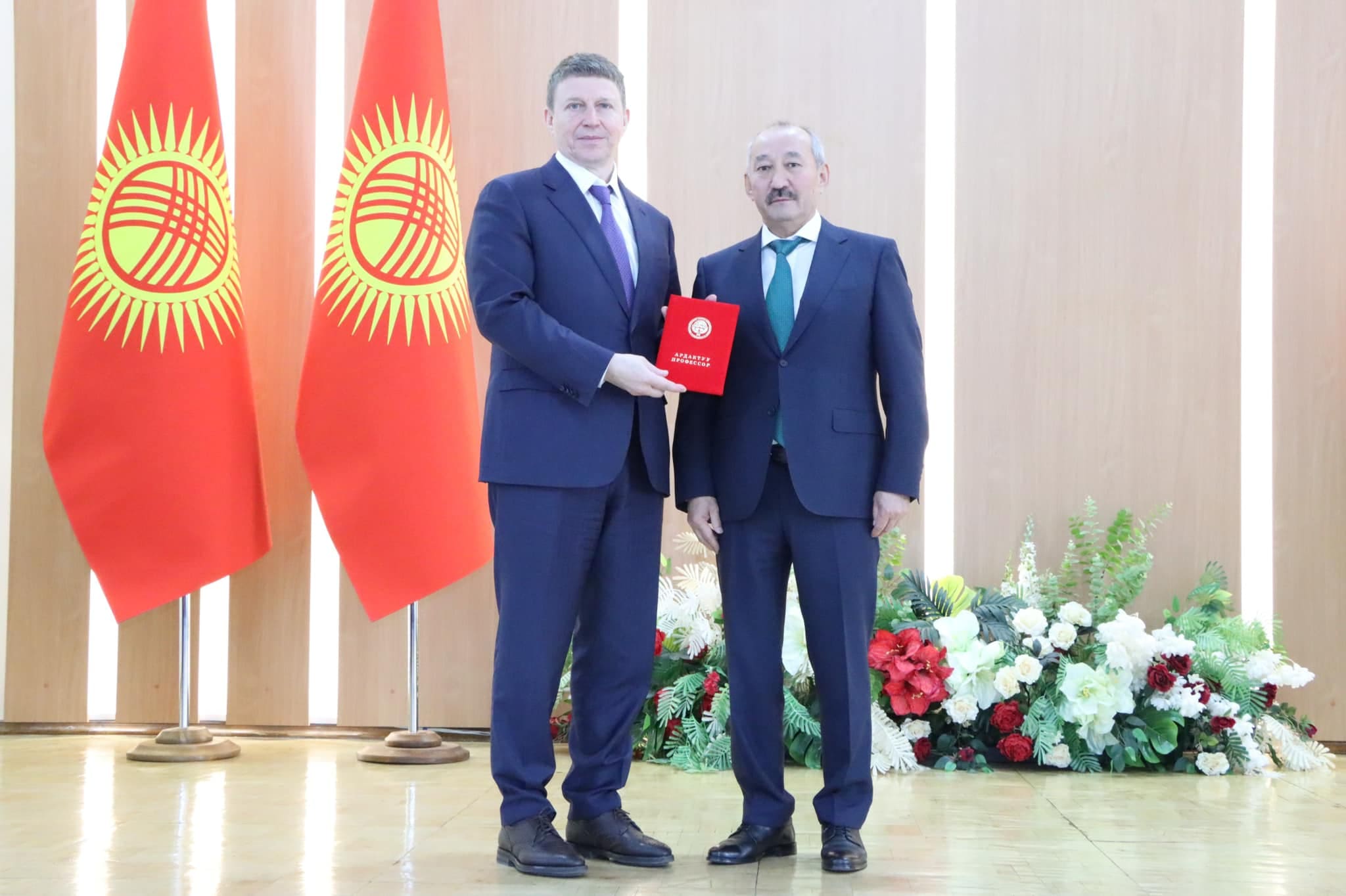 На международной научно-практической конференции ректор КНАУ им. К.И. Скрябина, академик НАН КР и РАН Нургазиев Р.З. в связи со значительным вкладом в развитие научного сотрудничества, оказанием методологической помощи и содействием в укреплении международных связей между Кыргызским национальным аграрным университетом им. К.И. Скрябина (КНАУ) и ФГБНУ «Национальный центр зерна им. П.П. Лукьяненко», а также в целях развития российско-кыргызских экономических, научных и технических связей в области селекции и семеноводства зерновых и зернобобовых культур,
