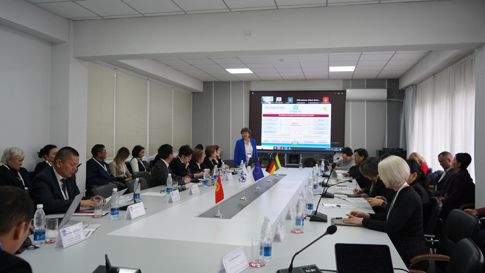 В ходе встречи были представлены организации-участники проекта, их роли и обсуждены ключевые направления и вопросы реализации проекта D-TIDE-KG, такие как: план работы и задачи партнёров; календарь проектных мероприятий,  создание виртуальных PhD-центров; вопросы проектного управления; финансовой отчётности; менеджмент качества и распространение результатов; устойчивость результатов проекта и институциональная интеграция.