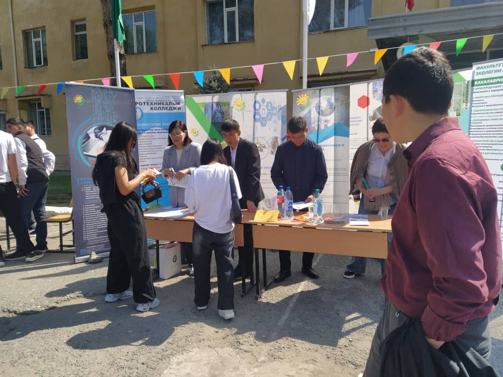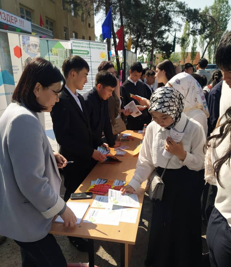 28 апреля 2026 года представители приёмной комиссии, факультета гидромелиорации, экологии и землеустройства, Института информационных систем и дистанционного образования, а также Агротехнического колледжа имени Султана Ибраимова и студенты Кыргызского национального аграрного университета имени К.И. Скрябина приняли участие в «Ярмарке будущих профессий», которая прошла в селе Беловодское на базе профессионального лицея №28.