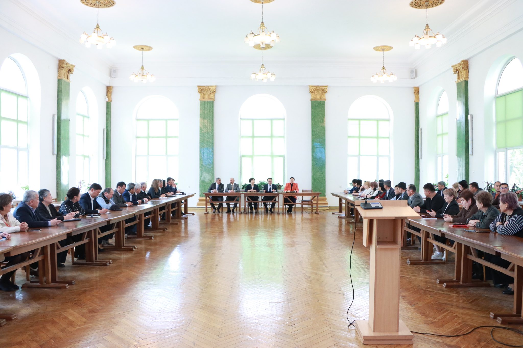 Өз сөзүндө Азат Жумгалбекович жаңы дайындалган ректорго ийгилик каалап, университеттин алдында турган мамлекеттик маанидеги негизги милдеттерге токтолду.